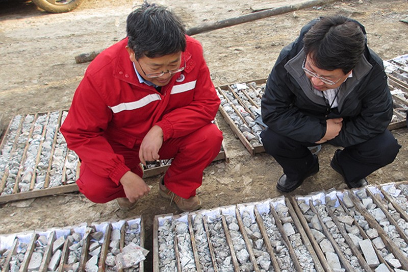 专家组在听取了项目组工作汇报后,踏着泥泞的山路前往ZK06孔施工现场查看岩芯和编录情况,并前往D612地质点查看了矿化蚀变和构造形迹,对项目技术人员给予现场指导。