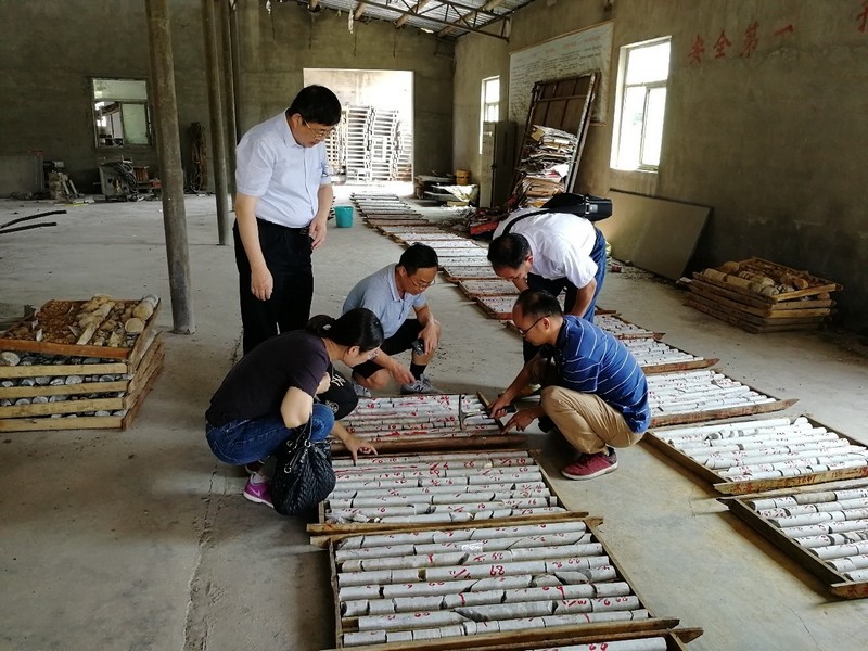 7月25日上午,江苏省地质调查研究院肖书明副总工程师、矿产所王丽娟副所长、魏邦顺高工和江苏省国土厅专家陆瑞宝教授级高工一行6人来“安徽省宣城市荞麦山东铜多金属矿普查”项目进行考察交流。洪大军所长向考察专家介绍了荞麦山-茶亭一带地质情况,并就该地区找矿方向及成矿条件同专家深入交换了意见。江苏省地质调查研究院专家仔细观察了该项目ZK3601孔岩心,认为该地区找矿前景良好,钻探工作取得了较好的成果,为江苏省高淳地区寻找类似矿床提供了地质依据,并就以后两家单位进行项目合作达成一致意见。
