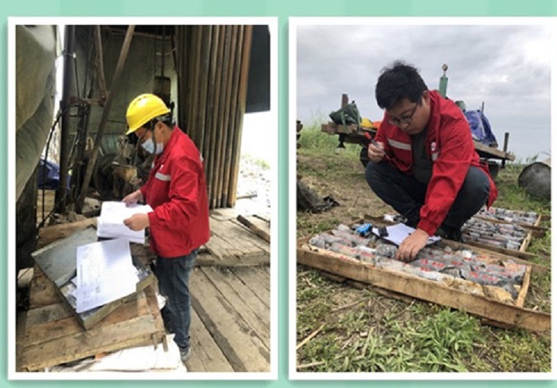 无为西湾项目组:高温下的机器轰鸣声,现场没有任何遮挡物,技术人员检查钻机班报表的记录情况后,认真的进行钻孔编录工作。汗水浸湿了他们的衣衫,见证了他们的坚守,在项目组有句俏皮的话“能找大矿、找富矿,它不更香嘛”。