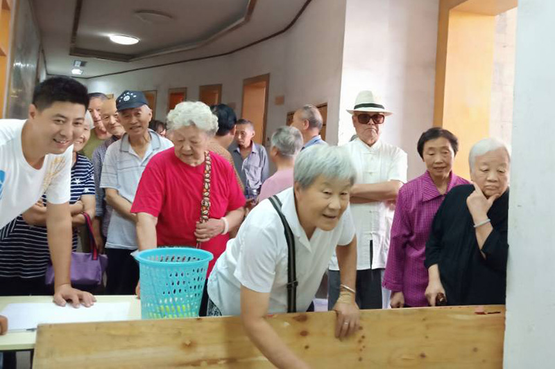 参加活动的离退休职工及家属们三五成群聚集在一起聊着家常叙着里短,享受着留蚌地区职工的独特福利。你听,这边为贾秀环阿姨投入九个球的掌声还在持续;夹花生那边又响起了阵阵喝彩声,原来是70岁以上组的邵云峰师傅在一分钟内夹起了55颗花生的好成绩。大概是因为每年都可以练习到,所以大伙的成绩是芝麻开花——节节高,一次更比一次好了。发奖也是越来越难,因为成绩并列的人数是越来越多了。特别是70岁以上组的老同志们在古稀之年身手还能那么灵活,真是可喜可贺,令人羡慕啊!