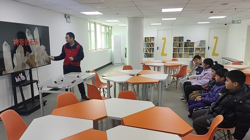 志愿者还精心准备了“科普课堂”。课堂上,志愿者结合专业所长,将矿物识别、地灾自救等专业知识,转化为青少年听得懂、学得会、用得上的科普内容。现场同学们踊跃参与、积极互动,在轻松热烈的氛围中点燃了对地球科学的探索热情,也树立了尊重自然、节约资源、保护生态的绿色发展理念。