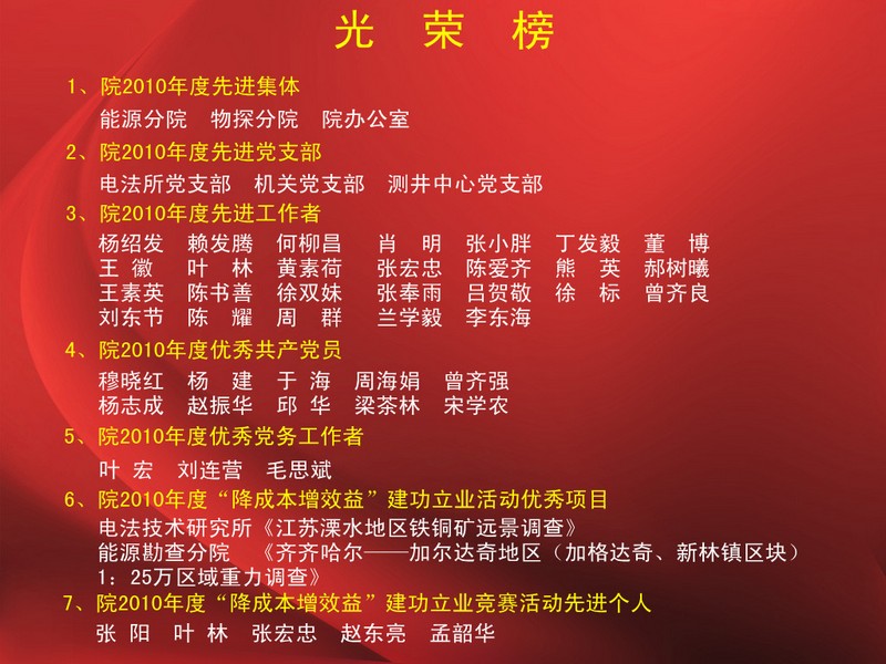 光 荣 榜