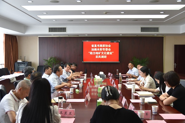 为深入学习贯彻习近平文化思想,推进基层文化建设,助力地矿行业高质量发展,524日,省直机关书画家协会副主席兼秘书长何海波等一行11人莅临我院,开展助力地矿文化建设调研活动。局机关党委专职副书记、机关纪委书记曹幸,我院党委委员、副院长何家国陪同调研。