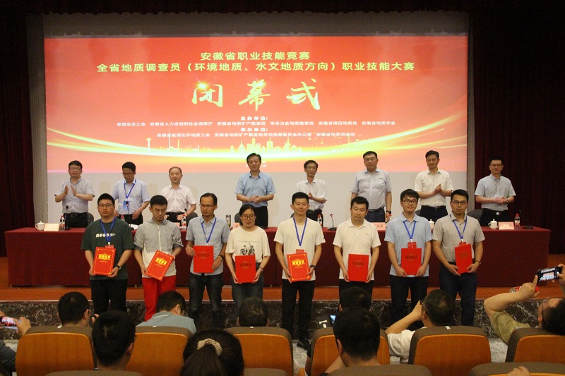 5月26-28日,安徽省地质调查员(环境地质、水文地质方向)职业技能大赛在安徽省淮南市举行。来自安徽省地矿局、华东冶金地质勘查局、安徽省煤田地质局三个地勘局所属单位和相关企业共33支队伍99名选手参加此次竞赛。陈同刚、陈科夫和马学静三位选手代表我院参赛。经过激烈角逐,三位选手发挥出色取得优异成绩,我院荣获团体一等奖,陈同刚荣获个人综合奖第一名,马学静荣获报告编写单项第一名,陈科夫综合成绩位于前列。