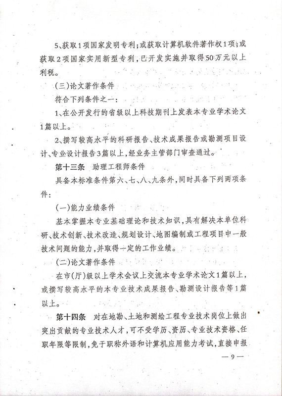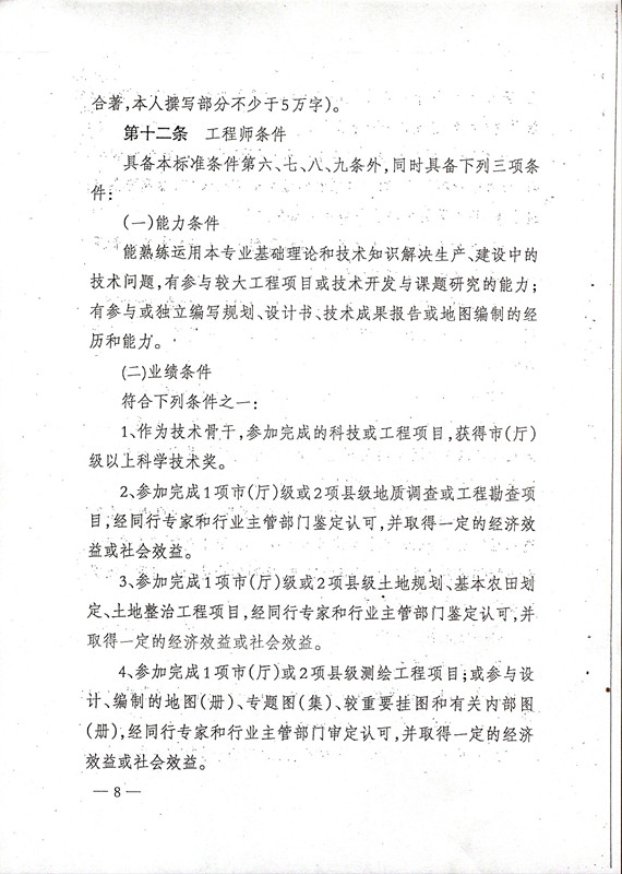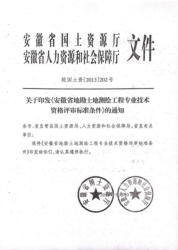 安徽省地勘土地测绘工程专业技术资格评审标准条件