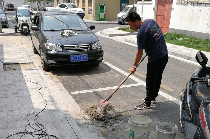 6月4日一大早,蚌埠管理处负责人张锦就带着基地水电工黄小洋、庄春雷来到我院三四期凿路面、拌水泥,埋管道……
