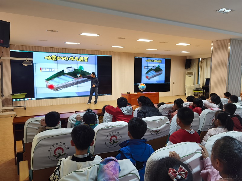 11月25日下午,院科普基地志愿者延海涛、郭猛猛、董博走进青年路小学,与百余名师生,开展了“我为群众办实事”学雷锋志愿服务活动——以“了解地球知识 拓展科技视野”为主题的科普进校园活动。