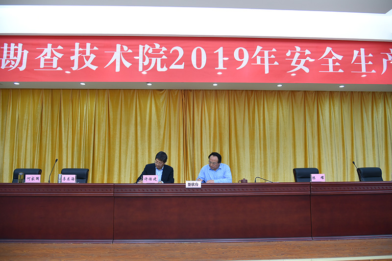 4月9日,院召开2019年安全生产会议,传达局2019年安全探矿工作会议精神,安排部署2019年安全生产工作。院长许传建出席会议并讲话,与各生产单位主要负责人签订2019年安全生产责任状。纪委书记李东海主持会议。副院长、工会主席陈耀,副院长汤正江,副院长何家国出席会议。