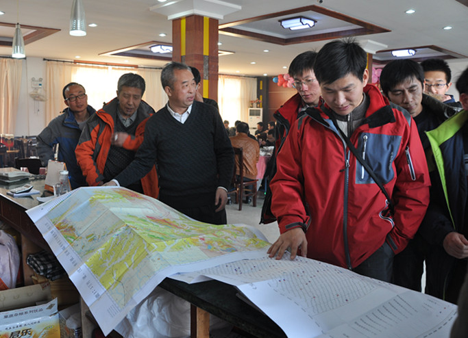 在院长战双庆、党委书记李晓荣的陪同下,中国地调局基础部领导、六大区地调中心物探业务主管、1:5万重力调查工作项目的技术负责人和技术骨干等一行40人的观摩团,来到能源分院《安徽1:5万湾沚镇、沈村、寒亭镇、宣城县幅重力调查》野外现场,听取了能源分院项目负责人关于项目施工部署、质量安全情况的介绍。观摩团专家考察了工区地形地貌,观摩了重力测量全过程,查看了原始数据记录,并就施工技术和管理经验等进行现场交流。能源分院的技术人员还就观摩团提出的问题作详细的解答。随后,观摩团来到能源分院项目组驻地检查指导,对项目组标准化文明施工团队的建设情况给予了高度评价。