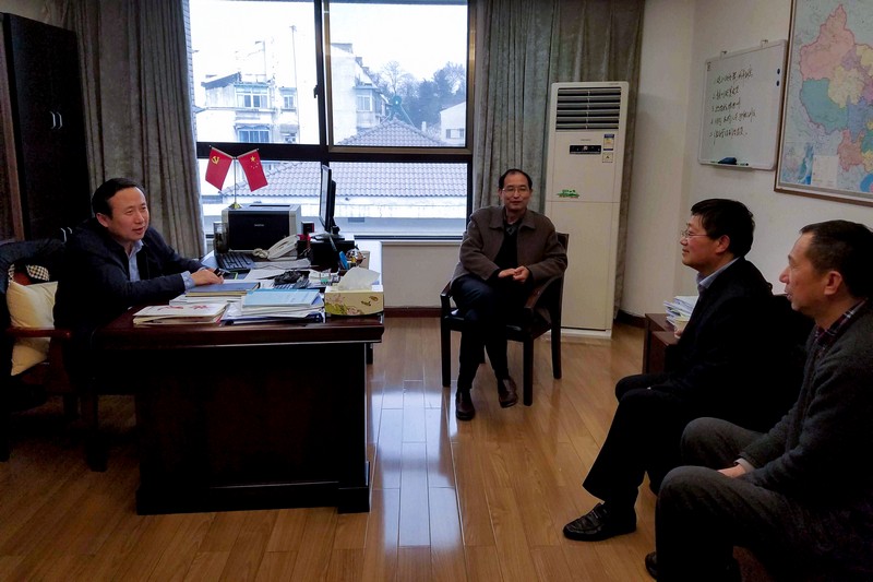 在南京地质调查中心,院领导拜访了中心主任李基宏。院长许传建首先代表院领导班子感谢南京地调中心多年来对我院工作的大力支持,他向李主任汇报我院资质建设、方法技术及人才队伍等有关情况,重点汇报我院在发挥传统物化探技术优势在服务地质找矿、油气勘察、地灾预警、农业地质调查等方面的工作成果。许院长表示,我院在南京地调中心的关心支持下,承担了多个项目,并取得了较好的工作成效,期待中心给予更多的支持与帮助。