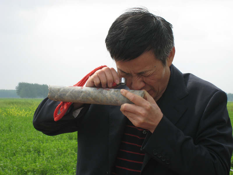 党委书记李晓荣、副院长汪青松在工区查看岩心