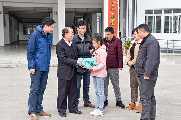 在活动中,何家国一行来到二郎初中、二郎中心学校等,为五位贫困生送去运动服装等,何家国副院长与贫困生进行了交流,询问了他们的学习、生活情况,详细了解家庭成员的身体状况、收入来源,鼓励他们乐观面对生活,勤奋学习、积极向上,将来以优异的成绩、良好的素质回报社会。(郭佳)