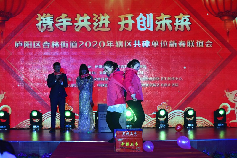 1月10日,我院选派《吉祥中国年》、《说唱脸谱》两个优秀节目参加“庐阳区杏林街道2020年辖区共建单位新春联谊会”。联谊会由庐阳区人民政府杏林街道办事处主办,安徽省新华印刷股份有限公司承办,我院及辖区内其它5家企事业单位受邀作为协办单位。我院副院长、工会主席陈耀和党办主任、党委委员蔺国栋出席盛会。参与节目演出的成员分别来自我院机关科室和各基层单位,他们的热情演出不仅为联谊会添姿增彩,也让我院在社区共建中绽放光彩。