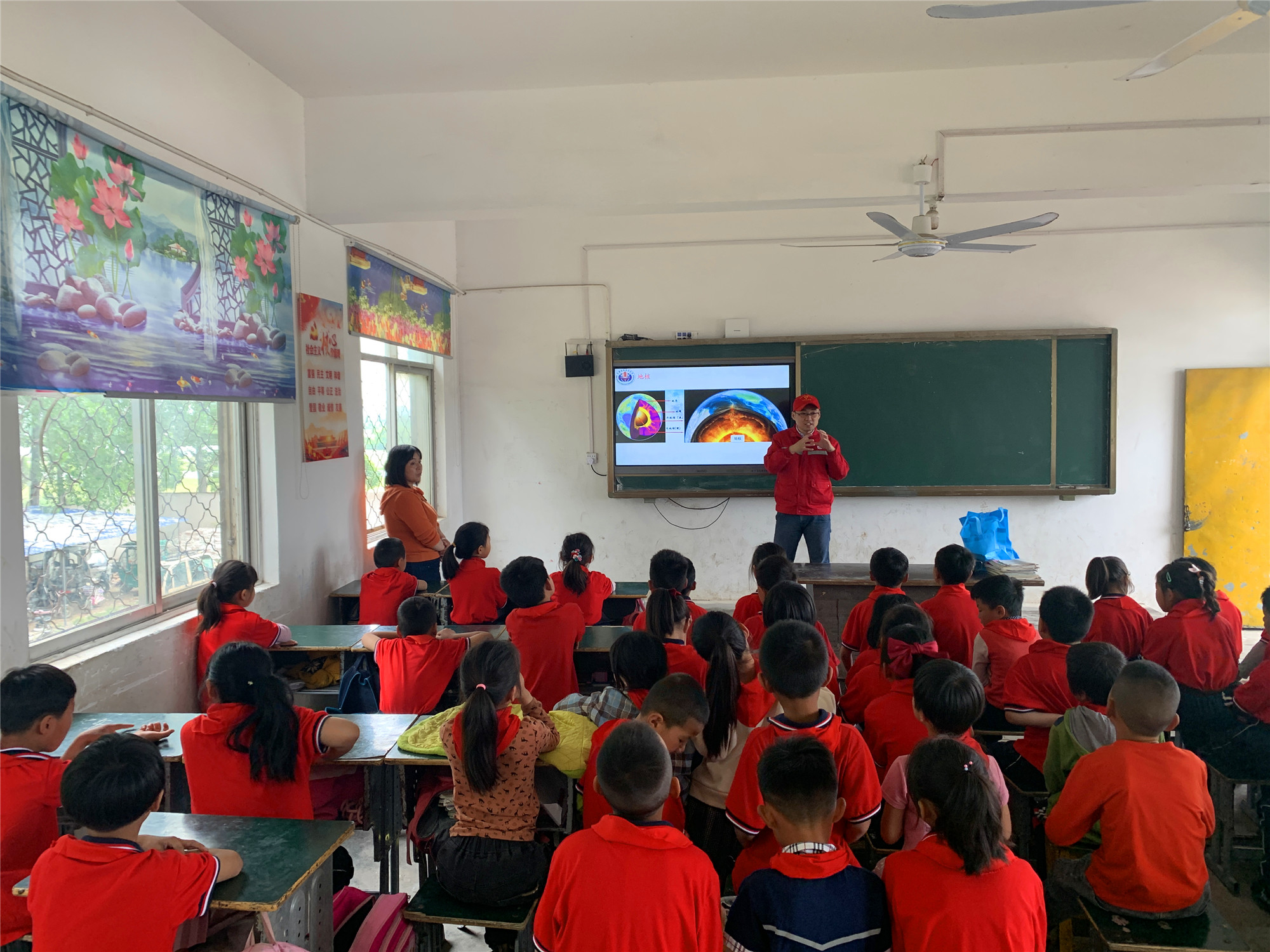 在“探索地球的奥秘”科普课堂,志愿者从地球的构造、地质地貌、地质现象等多方面,向孩子介绍了我们赖以生存的美丽星球,增强孩子们保护环境、珍爱地球的意识;在古生物科普课堂,志愿者带领孩子们认识古生物化石,了解远古生物,学习生物在地球上的衍化历程,激发孩子们对地球的探索热情;在无人机科普知识环节,志愿者给孩子们普及了无人机的种类、作用等,孩子们被现代无人机科技深深地震撼。志愿者采用图文并茂的方式,语言通俗易懂、妙趣横生,并不时与孩子们互动,在问答环节,孩子们踊跃抢答,课堂气氛十分活跃。在室外课中,志愿者带领孩子们来到学校操场,现场观看无人机表演,操作无人机,近距离感受科技的魅力。