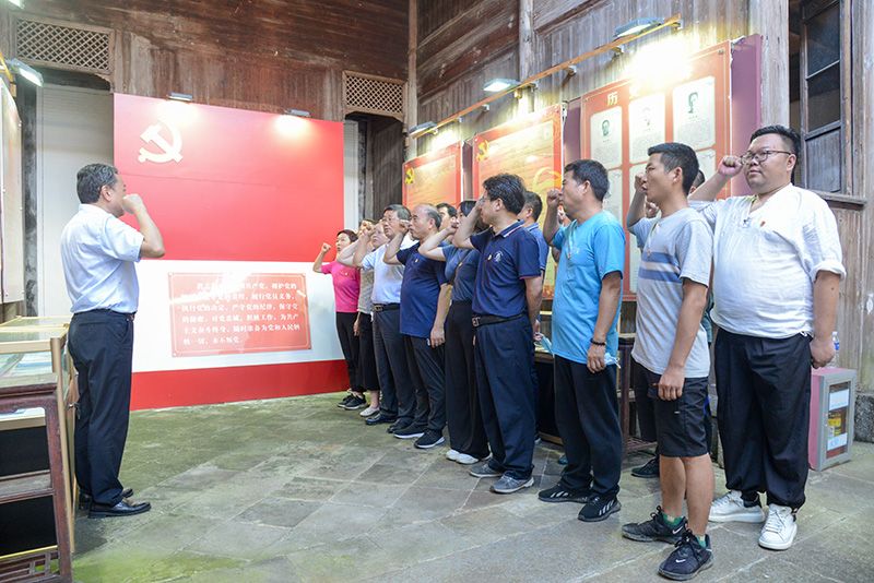 在党建工作共建交流会上,省公益性地质调查管理中心党支部与我院地调分院党支部分别就单位基本情况、党建工作工作开展情况尤其是特色党建工作进行介绍分享,并围绕党建、业务融合发展进行深入交流。会后,两单位党员共同前往当地红色教育基地开展爱国主义教育,重温入党誓词,接受廉政教育。