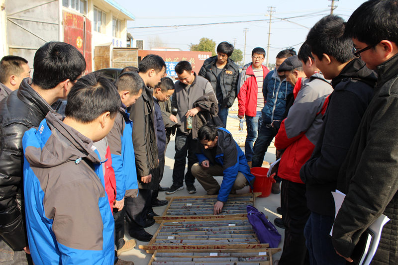 理论讲座结束后,培训班成员乘车前往我院曹老集基地岩芯库进行实地观摩学习。刘国华教授结合现场各类岩芯的具体构造,对参培人员进行了答疑解难。