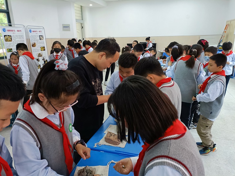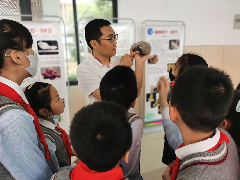 本次活动以“走进科技 你我同行——打开地学之门”为主题,通过岩石讲堂、观摩交流等方式,围绕岩(矿)石知识、地质灾害等方面开展。岩石讲堂,结合小学科学课的矿物与岩石课程内容,通过我院的30余件岩(矿)石标本和10张岩(矿)石知识展板,向小学生传授岩(矿)石知识,使他们对岩(矿)石有了感性的认识,了解岩(矿)石的形成、勘探、开采过程以及岩(矿)石在我们生活、经济建设中的作用。小学生们在学习地质灾害知识,识别地质灾害的同时,掌握了自我保护技能。