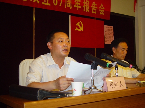 院党委书记张龙运同志向与会党员报告上半年经济发展、党建、文明创建情况和下半年工作安排