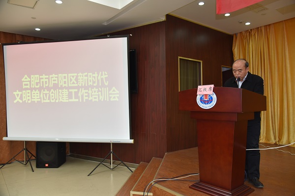 3月28日下午,合肥市庐阳区新时代文明单位创建工作培训会在我院举行,合肥市文明办行业指导处负责人徐冠军,庐阳区文明办主任、区委宣传部副部长朱先锋出席,会议由庐阳区文明办副主任陈雨主持。来自庐阳区110余家全国、省、市、区级文明单位代表和结对共建的街道、社区居委会代表参加会议。