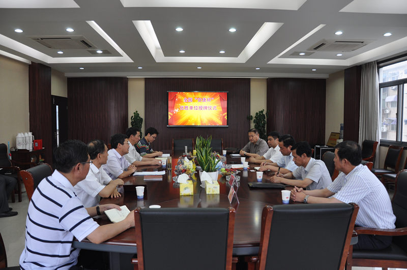6月24日下午,省总工会副主席阮怀楼在省地矿局副局长施申轶等的陪同下莅临我院,为我院颁发2012年度全国“安康杯”竞赛优胜单位奖牌。
