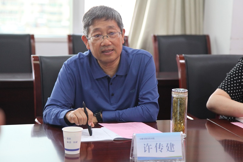 杨克富对许传建一行表示欢迎。他表示,安徽省勘查技术院在资源能源勘查、勘查技术方法攻关、人才队伍培养以及党的建设等方面工作成效显著,希望双方能在庐枞地区加强联合立项攻关,共同申报项目,并在相关领域推动优势互补、合作共赢。