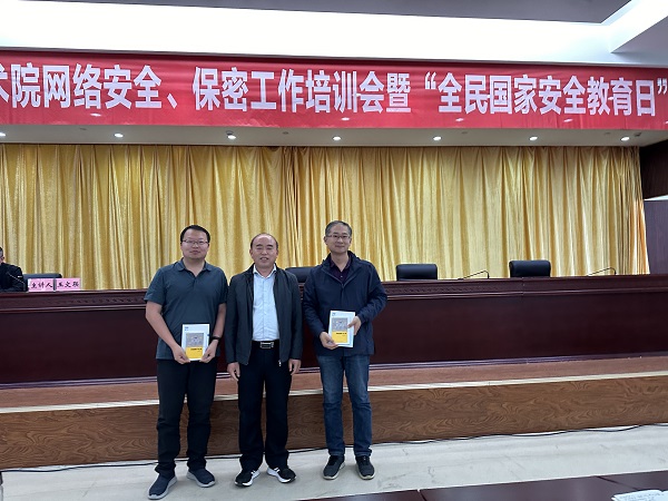 为深入学习领会习近平总书记关于国家安全的重要论述,坚定不移贯彻落实总体国家安全观,切实增强维护国家安全的责任感、使命感,提高全体职工的网络安全意识和保密意识,在第9个“全民国家安全教育日”到来之际,4月11日,我院举办了“网络安全、保密工作培训会暨‘全民国家安全教育日’”活动。活动邀请局科技信息处副处长王文联授课,院领导、在院全体职工150余人参加培训。院党委委员、副院长卢罡主持。