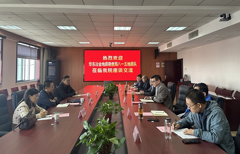 11月11日上午,华东冶金地质勘查局八一五地质队党委书记、队长方柏青一行来院调研交流。党委书记、院长姚波主持召开座谈会,院领导何家国、熊强青出席会议。