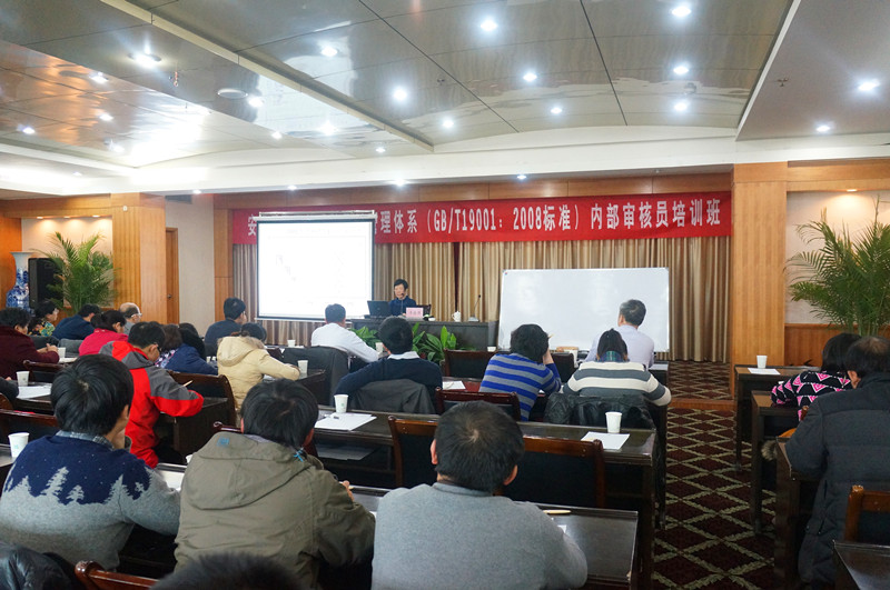 根据院质量管理体系2013年度管理评审改进项的内容要求,我院于2月19日—20日在蚌埠市怀洪宾馆举办ISO9001:2008版质量管理体系内审员培训班,邀请创源诚信认证有限公司高级咨询师李振萍授课。院领导、机关各科室、院属各单位行政及技术负责人、各级方法技术带头人、主要专业技术人员等70余人参加培训。