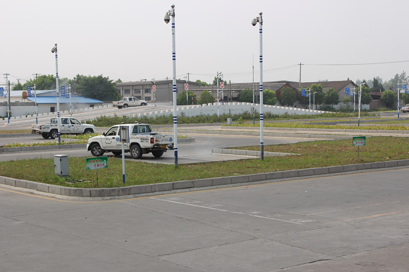 省地矿局副局长施申轶、局安工处处长张龙运在驾校训练场了解考核情况
