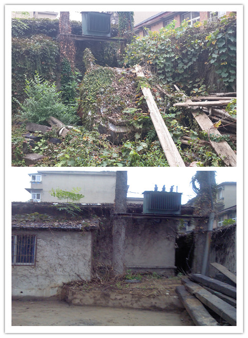 一期大院的后院自建成以来作为各二级单位的仓库、车库、碎样操作间,堆满了木料、钢筋、铁块、竹排、报废仪器、碎石料等杂物,还有一大堆建筑垃圾,配电房边的墙头缠满了爬山虎、葡萄藤和杂草。
