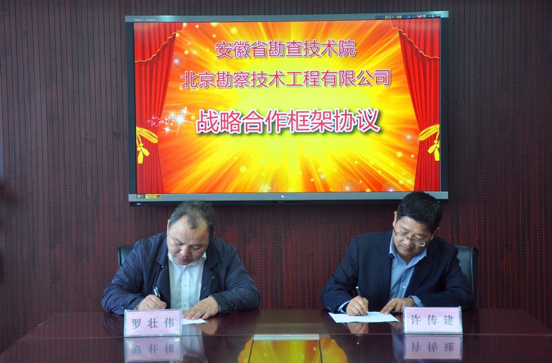 10月10日,我院与北京勘察技术工程有限公司在合肥签订了战略合作关系协议,进一步发挥双方优势,深入和拓展合作领域,实现互利共赢。