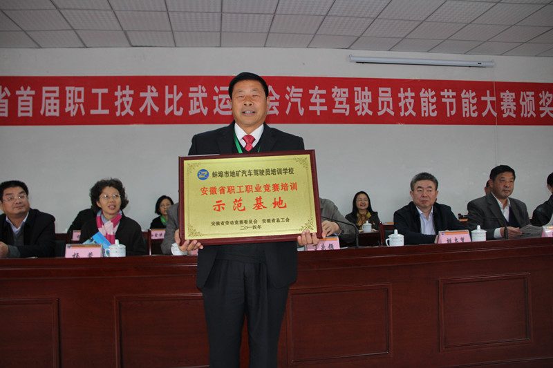 颁奖仪式上,蚌埠地矿驾校被安徽省劳动竞赛委员会、安徽省总工会授予“安徽省职工职业竞赛培训示范基地”称号。