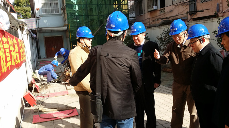 12月2日下午,上海市住房保障和房屋管理局局长刘海生及市、闸北区房管局领导莅临“洛川东路400弄29-30号综合整治工程(房屋纠偏、基础托换)工程”检查指导工作,上海工程处承担该项目的纠偏加固工程”。