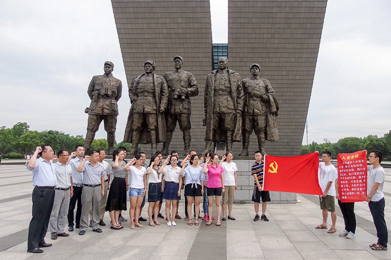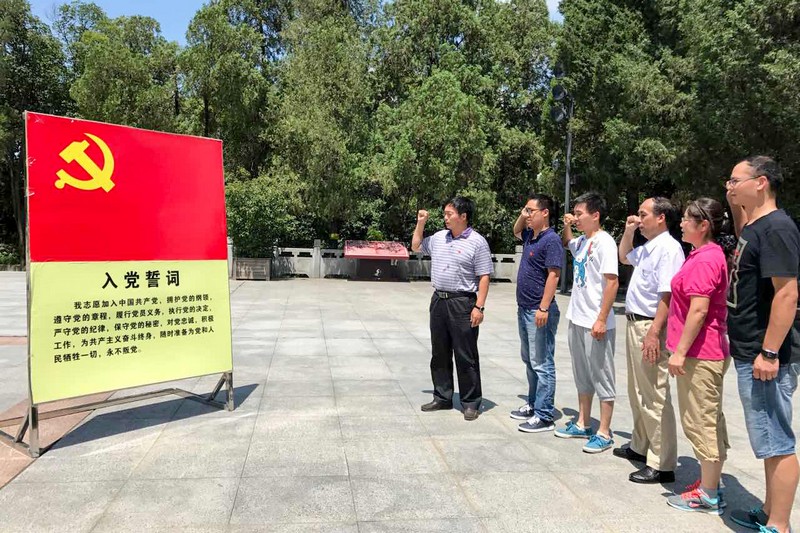 院党委结合“两学一做”学习教育常态化制度化建设,联系“讲政治、重规矩、作表率”专题教育活动的开展,根据该院实际,以各党支部为单位,通过组织党员同志和积极分子就近参观当地党史教育基地参观学习,铭记党的光辉历史,弘扬党的优良传统。测井中心党支部利用施工间隙,组织支部党员瞻仰了雨花台革命烈士纪念碑,重温了纪念碑廊照壁上《共产党宣言》等三篇马克思主义经典著作。电法所党支部利用野外施工间隙,组织支部党员同志到金寨县烈士纪念馆参观学习,地调分院党支部、计算中心党支部、地震分院党支部、物探分院党支部和离退休党支部组织支部党员参观了全国爱国主义教育示范基地——渡江战役纪念馆,并在馆前面对党旗,重温了入党誓词。机关党支部和后勤服务中心党支部组织支部党员参观了渡江战役总前委瑶岗村旧址。
