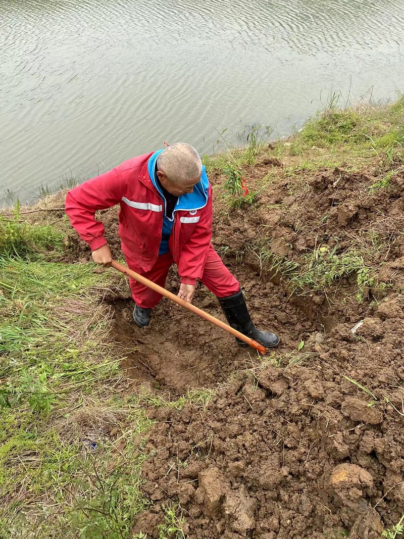 铜陵大姚项目组:顶着炎炎烈日,穿着厚厚的胶鞋,工作人员正在挖坑埋AB极。这是项目组联合中南大学在工区开展广域电磁法试验。