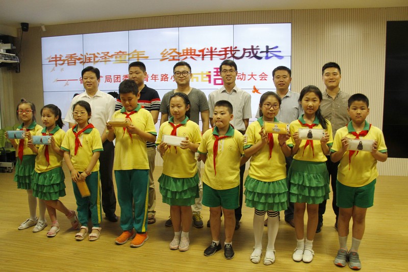 本次成语互动比赛共设置了成语听写、成语填空和你比我猜三个环节。同学们通过班级组队合作的方式参加每轮环节:成语听写中,小选手安静聆听、细心着笔、认真检查;成语填空中,小选手轮流作答、沉着应对、抢答激烈;“你比我猜”中,小选手绞尽脑汁、比手画脚、默契合作……整个活动中,同学们充分发挥自己的聪明才智,拓展思维,积极参与,热情高涨,加油声、欢呼声、欢笑声充斥全场,把活动气氛推向一个又一个高潮。活动最后,局团委为每名获奖的选手颁发了奖品,并向青年路小学捐赠了百余本图书。