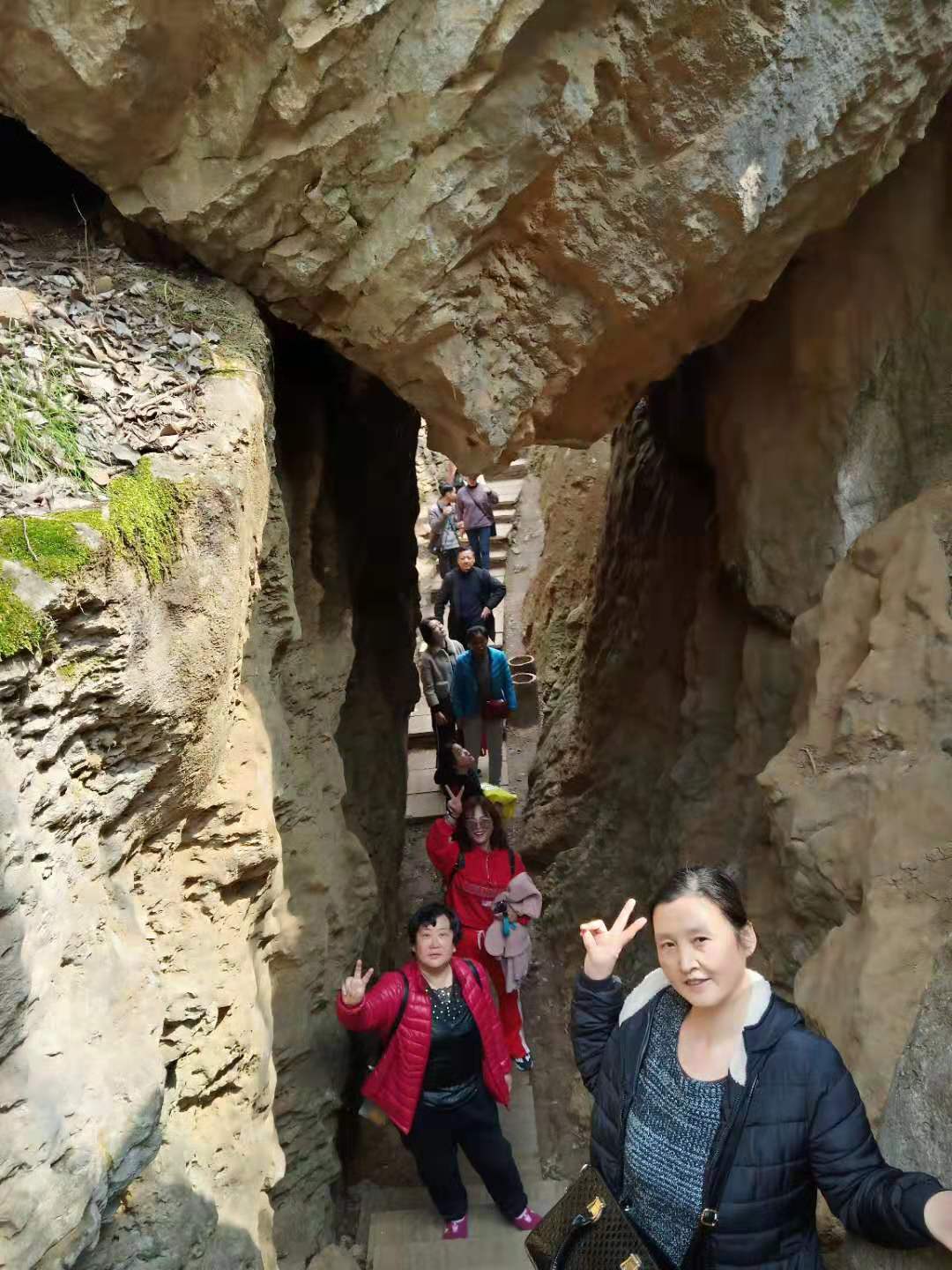 女职工一路欢声笑语,来到素有“皖北石林”之称,因古时常有狼群出没而得名。大家沿途赏溶洞、探迷谷、观摩崖石刻、采山花,女职工对迷谷内奇特地形、明谷暗涧、沟沟相连、谷谷相通,谷深处抬头望天如一线的美景赞叹不已,感叹大自然的鬼斧神工。