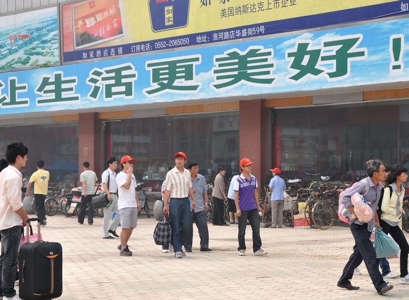 志愿者为外地来蚌旅客提供购票、提送行李等便民服务