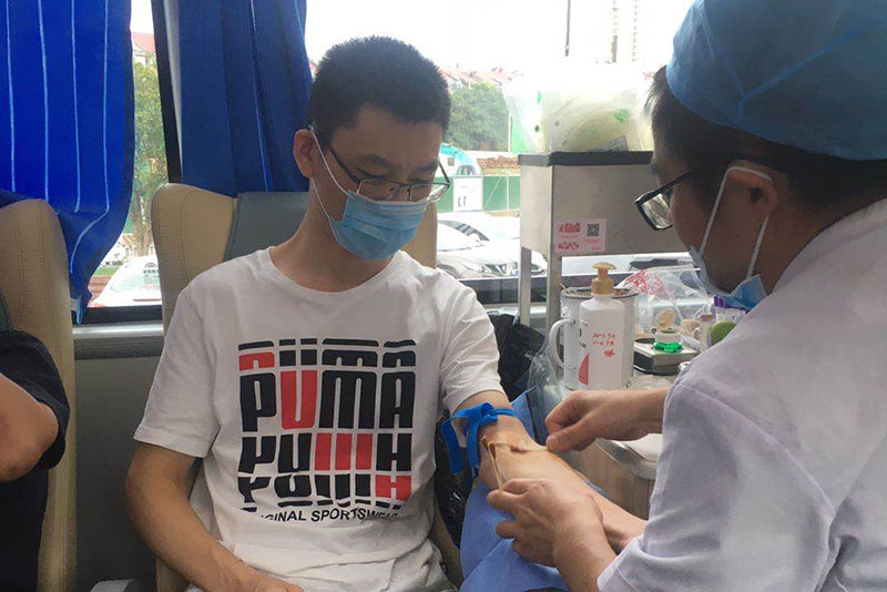 在活动现场,参加自愿参与无偿献血的职工里,既有党员,也有群众,既有多次献血的“老兵”,又有初次献血的“新人”,大家有序排队,依次完成了填写报名表、化验、采血等工作。活动现场井然有序,气氛亲切温馨,大家都希望能通过这种方式来宣传无偿献血,庆祝中国人民解放军建军93周年。