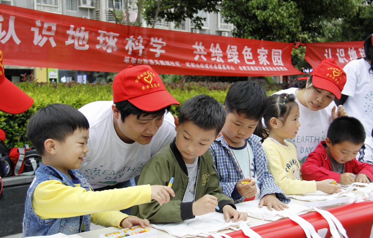 4月19日下午,由安徽省地质调查院和安徽省地质学会青年工作委员会主办,我院、政务区笔架山街道天鹅湖社区、安徽省地球物理学会等单位协办的“认识地球科学 共绘绿色家园”――第48个世界地球日活动在天鹅湖万达广场拉开序幕。活动中邀请了天鹅湖畔幼儿园师生近40人,孩子们利用蜡笔在白色环保袋上涂满各类图案,兴高采烈的展示着自己的杰作,让孩子们从小树立爱护地球、关注环保的意识。