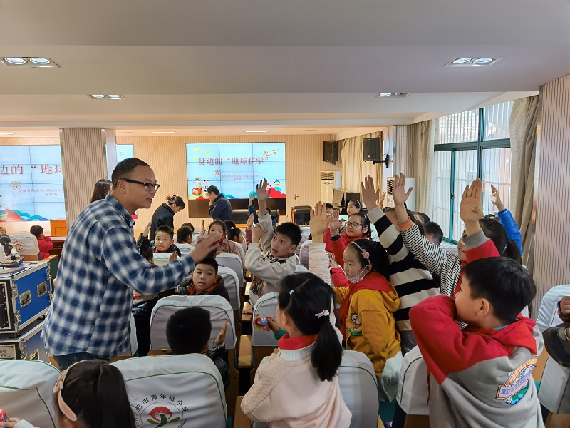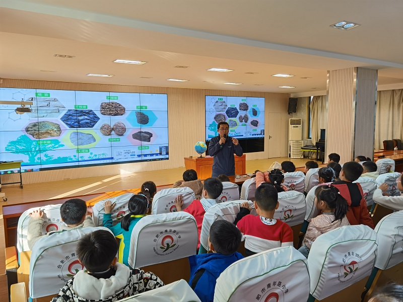 11月25日下午,院科普基地志愿者延海涛、郭猛猛、董博走进青年路小学,与百余名师生,开展了“我为群众办实事”学雷锋志愿服务活动——以“了解地球知识 拓展科技视野”为主题的科普进校园活动。