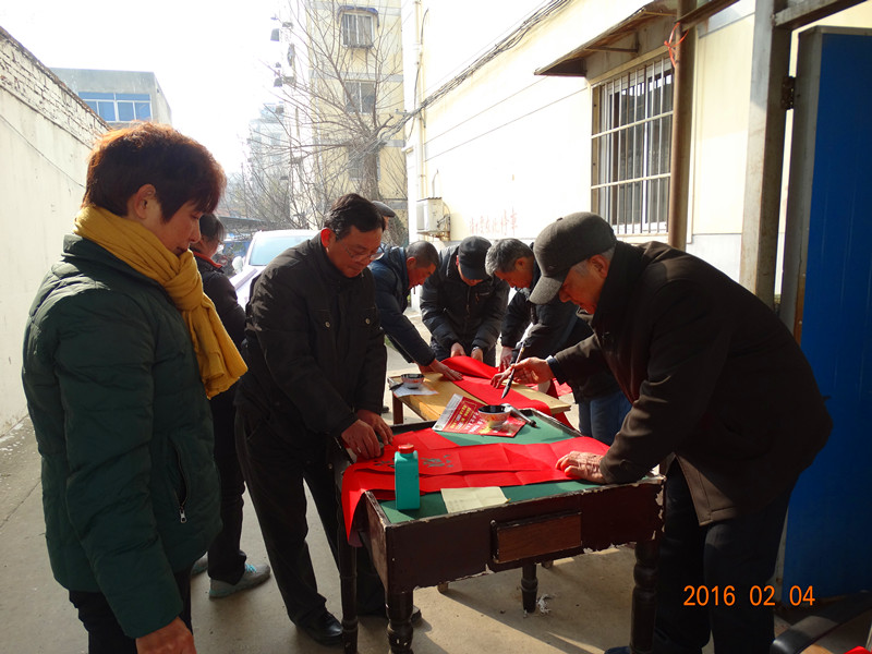 2月4日下午,合肥地矿家园小区内,院纪委书记李东海及张永德、穆晓红、苏根波、戴传慧、何援军等爱好书法的在职、退休职工为广大业主现场免费写“福”字和春联。