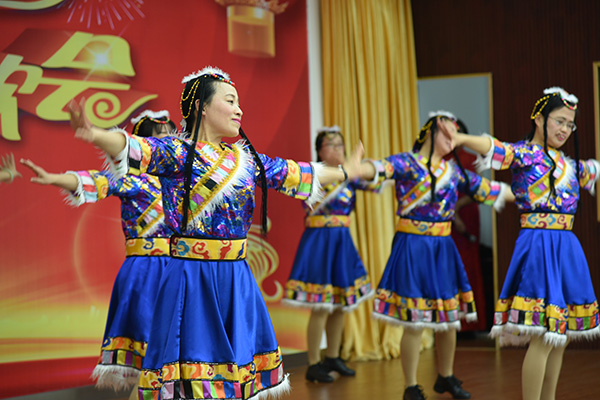 联欢会在充满少数民族风情的舞蹈《康巴情》拉开帷幕。葫芦丝太极拳《月光下的凤尾竹》、扇子舞《亲亲茉莉花》、小品《热心老板》、舞台剧《唱响春天》等15个形式多样,精彩活泼的节目在喜庆祥和的气氛中铺展开来。形式独特的歌朗诵《宝贝》,表达了“一物人”对团圆幸福的期盼和向往。欢快的歌声、优美的舞姿迎来一阵阵叫好,活动现场掌声不断,大家看着、聊着、笑着,体会着“一物”大家庭的温暖与快乐。此次联欢会中,还特别穿插了三轮抽奖环节,不仅是现场的观众饱享了丰富的精神文化大餐,在坚守野外生产一线的职工,同样收获了一份意外的惊喜和祝福,增添了欢乐的气氛,活跃了喜悦的心情。