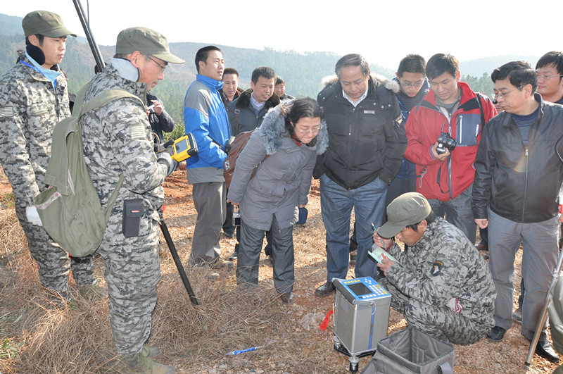 在院长战双庆、党委书记李晓荣的陪同下,中国地调局基础部领导、六大区地调中心物探业务主管、1:5万重力调查工作项目的技术负责人和技术骨干等一行40人的观摩团,来到能源分院《安徽1:5万湾沚镇、沈村、寒亭镇、宣城县幅重力调查》野外现场,听取了能源分院项目负责人关于项目施工部署、质量安全情况的介绍。观摩团专家考察了工区地形地貌,观摩了重力测量全过程,查看了原始数据记录,并就施工技术和管理经验等进行现场交流。能源分院的技术人员还就观摩团提出的问题作详细的解答。随后,观摩团来到能源分院项目组驻地检查指导,对项目组标准化文明施工团队的建设情况给予了高度评价。