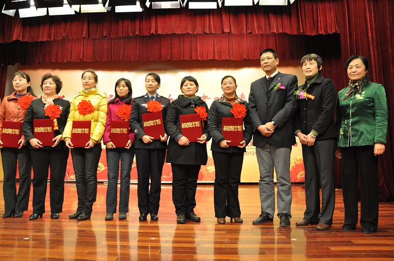 领导为陈耀(右四)等获奖女性颁奖并合影