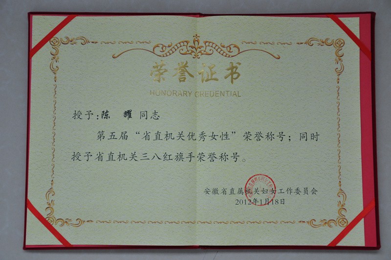 为纪念国际“三八”妇女节102周年,3月8日上午,由省直妇工委主办的“第五届省直机关十大女杰”颁奖典礼在省委小礼堂举行。省直工委书记张国富、省直工委委员、巡视员王志军等有关领导出席颁奖礼并为喜获殊荣的优秀女性颁奖,我院副院长陈耀同志荣获“第五届省直机关优秀女性”,同时被授予省直机关“三八”红旗手荣誉称号。