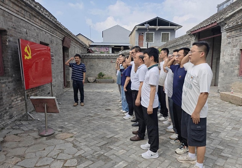 随后,全体同志来到怀远县龙亢镇新四军淮上办事处旧址瞻仰参观,认真聆听讲解员介绍新四军抗战的革命传统和历史故事。一件件珍贵文物和历史图片,生动再现了新四军在淮河两岸英勇抗战的光辉历程。党员们驻足于“淮上英烈墙”前,深切缅怀牺牲的3000余名新四军将士,感慨今日和平的来之不易。活动中,全体党员重温入党誓词,铭记共产党人的初心与担当。