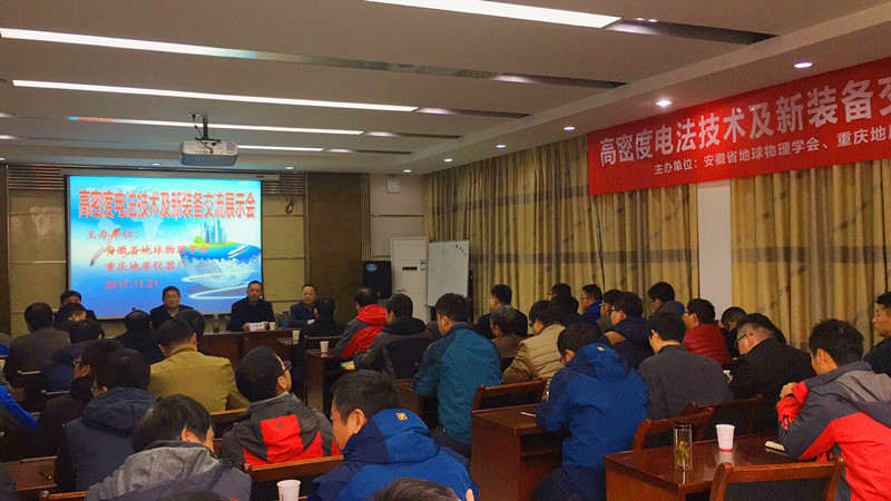 11月21-22日,由安徽省地球物理学会、重庆地质仪器厂联合主办的“高密度电法技术及新装备交流展示会”在合肥举办,院长许传建、党委书记兼总工汪青松,重庆地质仪器厂党委书记兼厂长王大成、总工耿启立出席会议,来自全省地矿、冶金、水利、环境等系统的80余人参会。