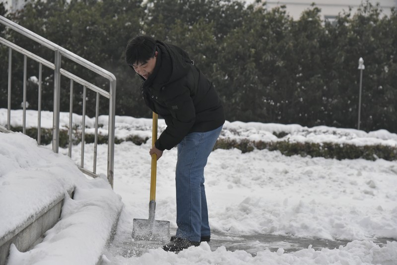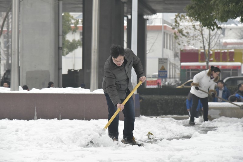 1月29日,勘查技术院几十余名党员干部职工热火朝天地在阜阳北路清理道路积雪。虽然寒风凛冽,大家的手和脸冻得通红,大家不畏严寒,分工明确,纷纷拿起铁锹、扫帚等工具与风雪“搏斗”。经过一个多小时的奋战,道路积雪被清除,保证了周边群众以及车辆的正常出行。