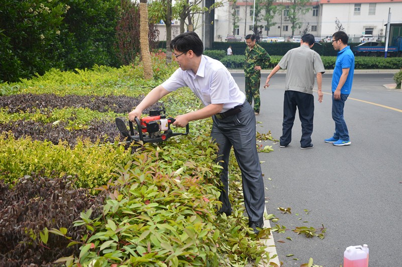 进入五月以来,我院景观绿化带的花草绿篱生长得极为迅速,为了提高整洁度、美化单位环境、节省聘请专人修剪开支,后勤服务中心近期购置了修枝机,在院纪委书记李东海、中心主任褚前卫的带领下,中心职工们换上工作服,端起沉重的修枝机轮番上阵,钻进茂密的绿化带里,忍受蚊虫叮咬和修枝机发出的噪音,对办公楼内外的绿篱和树木进行了认真精心的剪修整形,现场一派热火朝天的忙碌景象。